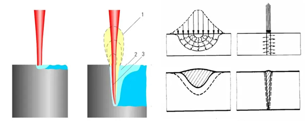 Лазерная сварка включает в себя лазерную теплопроводную сварку и лазерную сварку с глубоким проплавлением. Основное различие между теплопроводной сваркой и сваркой с глубоким проплавлением заключается в плотности мощности, прикладываемой к поверхности металла в единицу времени; для разных металлов существуют разные критические значения.