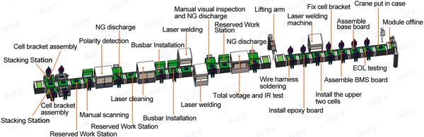 объединяют сортировку ячеек, прецизионную сварку, сборку модулей и испытания по окончании срока службы, обеспечивая высокую производительность, стабильное качество и эффективную работу, что делает их идеальными для производителей крупносерийных аккумуляторных батарей.