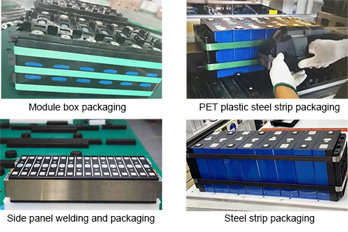 Затем рабочий надевает стальную ленту или обвязочную ленту на модуль, чтобы предотвратить смещение или деформацию во время последующей транспортировки и сборки. Это также может оптимизировать контактное сопротивление между ячейками батареи и улучшить электрические характеристики и эффективность зарядки и разрядки модуля.