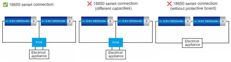 Меры предосторожности при последовательном и параллельном соединении литиевых батарей