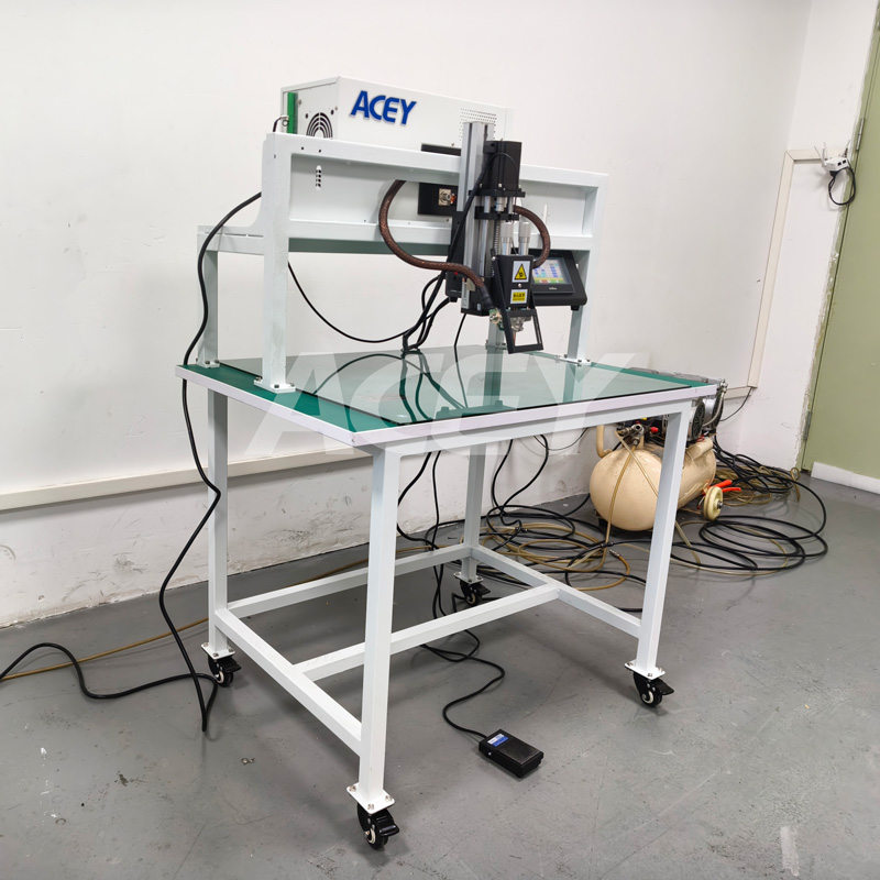 Ручной аппарат для точечной сварки аккумуляторных батарей ACEY-8000T подходит для сборки и сварки цилиндрических литиевых батарейных блоков, таких как 18650, 21700, 26650, 32700 и 32140. Оборудование имеет такие функции, как отслеживание точек сварки, обнаружение взрыва, контроль, запись и сигнализация ложных и пропущенных сварных швов, и подходит для сварки аккумуляторных блоков в небольших партиях.